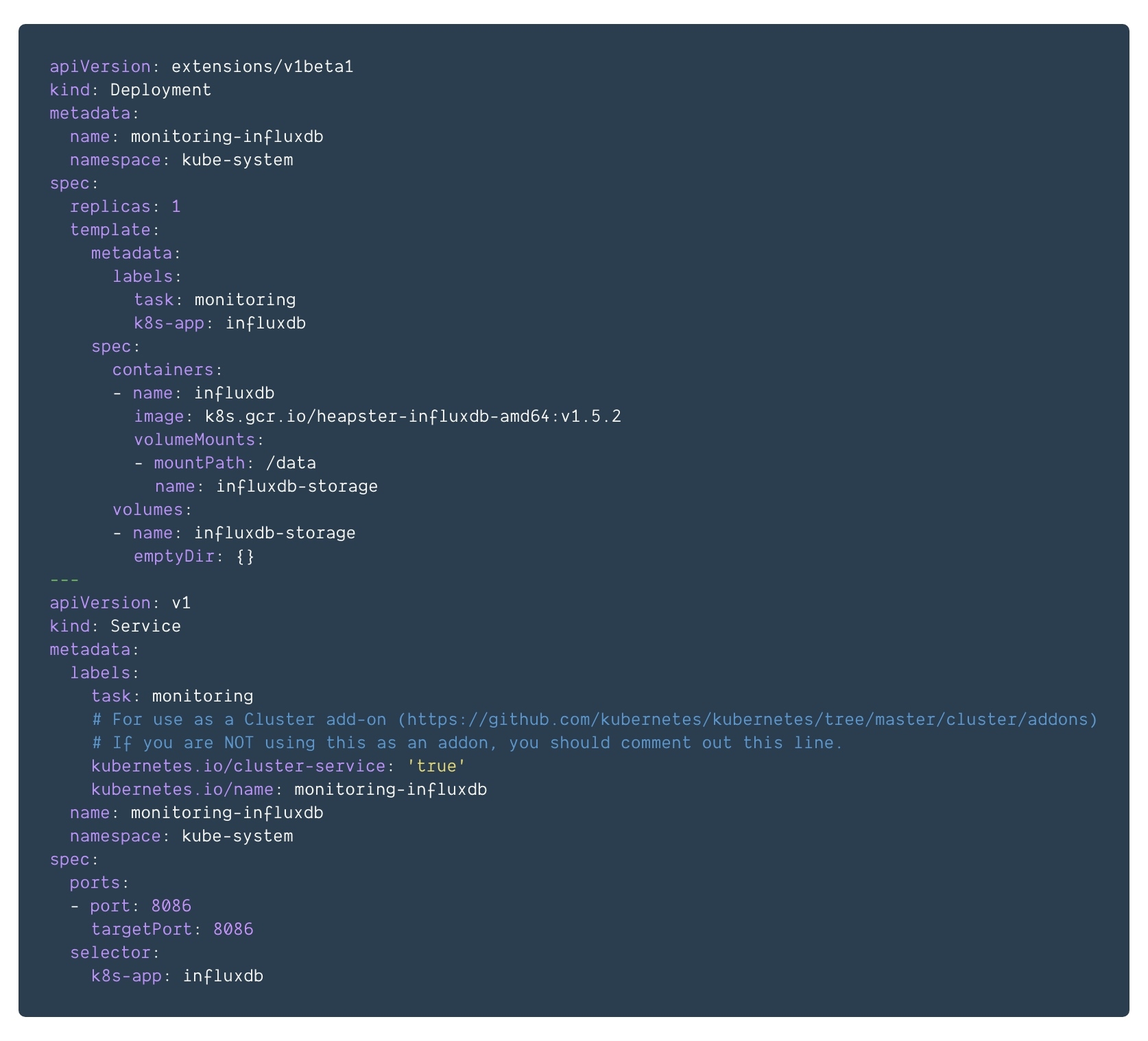 Heapster+InfluxDB+Grafana共同组成了一个流行的监控解决方案