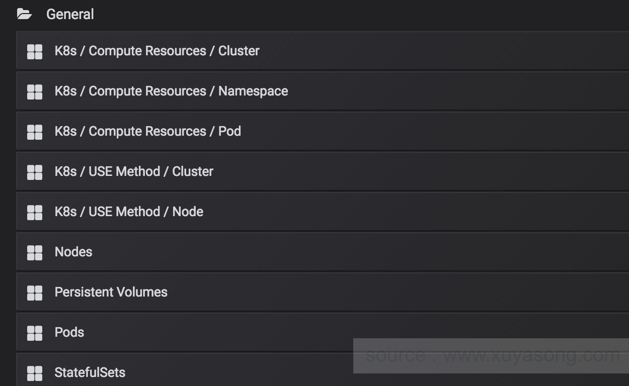 grafana的自带监控图列表: