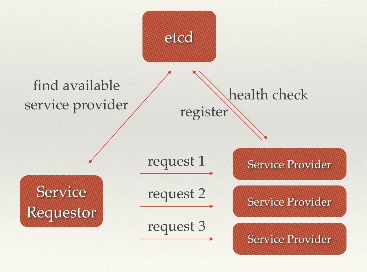 微服务协同工作架构中,服务动态添加。随着 Docker 容器的流行,多种微服务共同协作,构成一个相对功能强大的架构的案例越来越多。透明化的动态添加这些服务的需求也日益强烈。通过服务发现机制,在 etcd 中注册某个服务名字的目录,在该目录下存储可用的服务节点的 IP。在使用服务的过程中,只要从服务目录下查找可用的服务节点去使用即可。