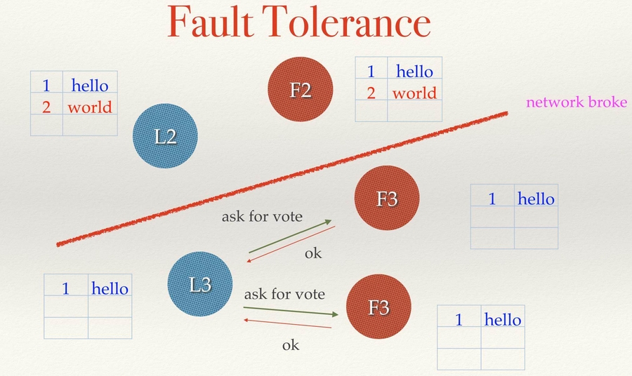 Raft 某个节点宕机后会如何? 通常情况下,如果是 Follower 节点宕机,如果剩余可用节点数量超过半数,集群可以几乎没有影响的正常工作。如果是 Leader 节点宕机,那么 Follower 就收不到心跳而超时,发起竞选获得投票,成为新一轮 term 的 Leader,继续为集群提供服务。需要注意的是;etcd 目前没有任何机制会自动去变化整个集群总共的节点数量,即如果没有人为的调用 API,etcd 宕机后的节点仍然被计算为总节点数中,任何请求被确认需要获得的投票数都是这个总数的半数以上。