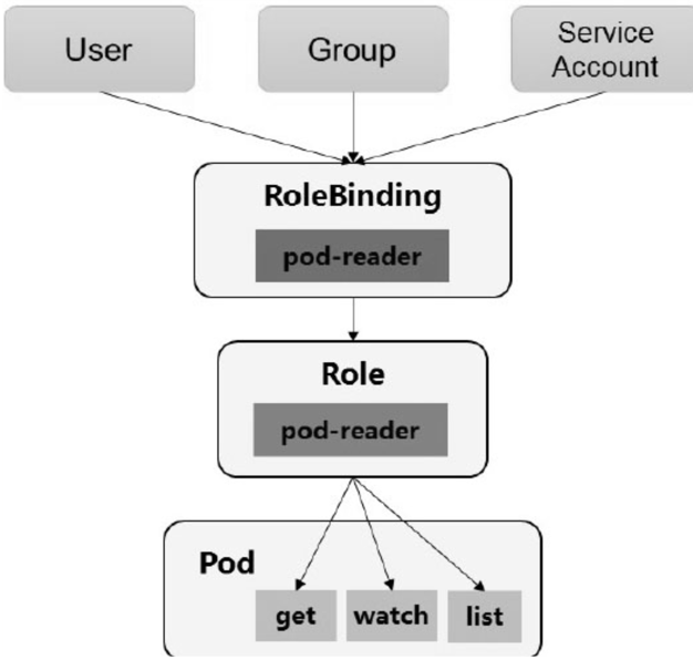 RoloBinding可以将角色中定义的权限授予用户或用户组,RoleBinding包含一组权限列表(subjects),权限列表中包含有不同形式的待授予权限资源类型(users、groups、service accounts),RoleBinding适用于某个命名空间内授权,而 ClusterRoleBinding适用于集群范围内的授权。